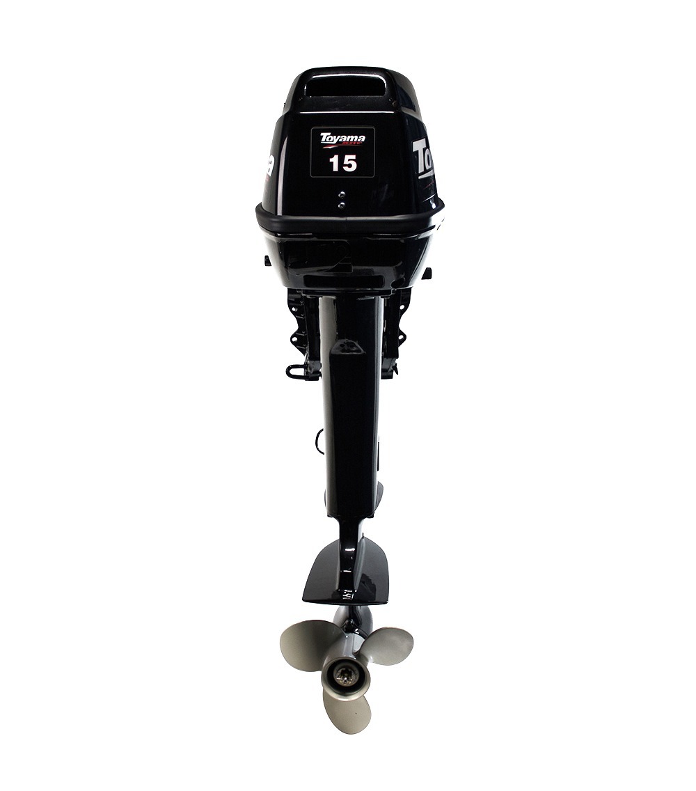 Данная модель отличается довольно внушительной массой, которая составляет 36 кг. При этом, рабочий объем двухтактного силового агрегата составляет 246 куб. см. Электронная система зажигания обеспечивает минимальный уровень потребления топлива, который составляет 6 литров топлива в час, что с учетом массы двигателя и его мощности является отличным показателем. Модель оснащается встроенным топливным баком на 24 литра, благодаря чему она может плавать около 4 часов при предельных нагрузках. Максимальный крутящий момент Toyama T15BMS находится в районе 4500- 5500 оборотов в минуту