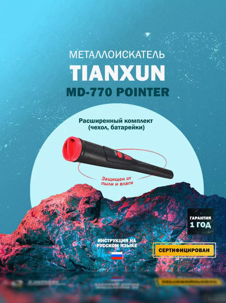Пинпоинтер Tianxun MD-770 - актуальное и недорогое решением, в качестве вспомогательного инструмента при работах с металлоискателем на грунте. Благодаря своей быстрой реакцией и большой глубиной обнаружения, пинпоинтер Тианксун МД 770, пользуется заслуженным уважением у новичков и любителей приборного поиска. Tianxun MD-770 компактный пинпоинтер с быстрым откликом от цели и хорошей дальностью обнаружения черного или цветного металла. Предназначен для локального поиска и точного обнаружения металлических объектов в реальном времени на ограниченной площади, или в стесненных местах. Способен среагировать на различного рода металлические мишени, начиная от небольшой свинцовой дробинки и заканчивая более крупными предметами, такими например как медная или золотая монеты, серебряный портсигар и так далее.